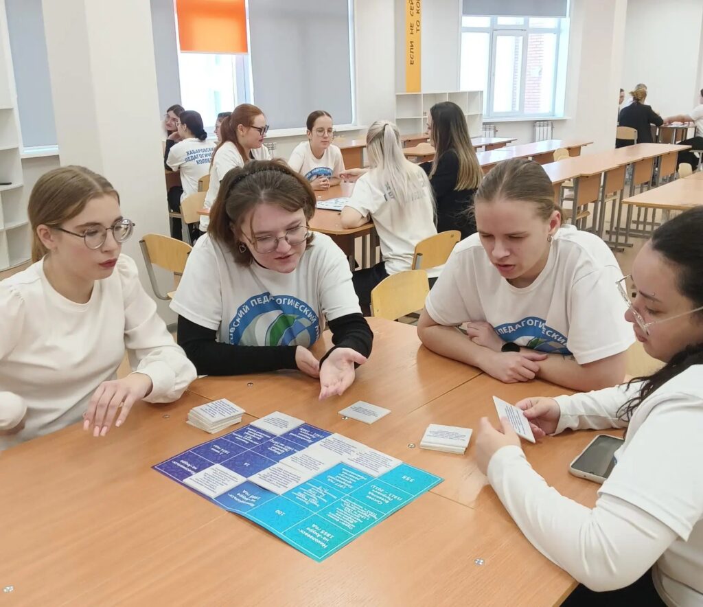 Будущие педагоги с помощью настольных игр погрузились в мир терминологии и истории педагогики, современных технологий и истории образования в Хабаровском крае, имиджа педагога в реальном и цифровом мире. Итоги полученных знаний через игровой формат подвели с помощью онлайн-викторины «Профи педагогики», которая выявила среди участников команду-победителя.